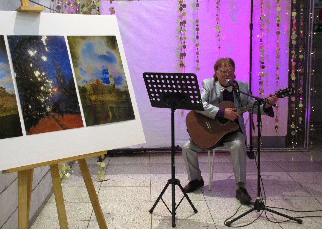 Творческую атмосферу на открытиях выставок в ДК «Строитель» дополняют выступления певцов, музыкантов, актеров в рамках проекта Натальи Евтиховой «Культурная среда». В этот раз кроме представителей творческих коллективов, выступил и сам автор выставки. Александр Фефилов взял в руки гитару и к радости гостей исполнил несколько хитов прошлых лет.