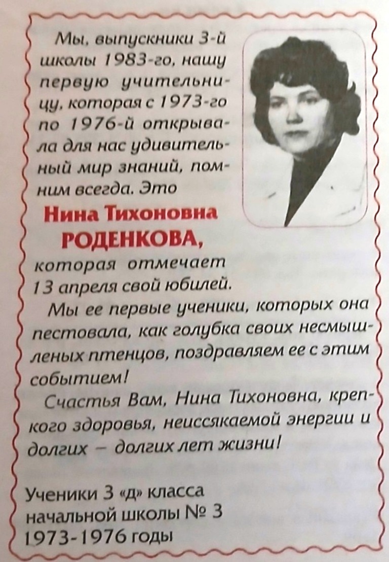 Наталья Беляева: «Нина Тихоновна — моя Первая Учительница! Учитель с Большой Буквы! Мы до сих пор общаемся!)))»