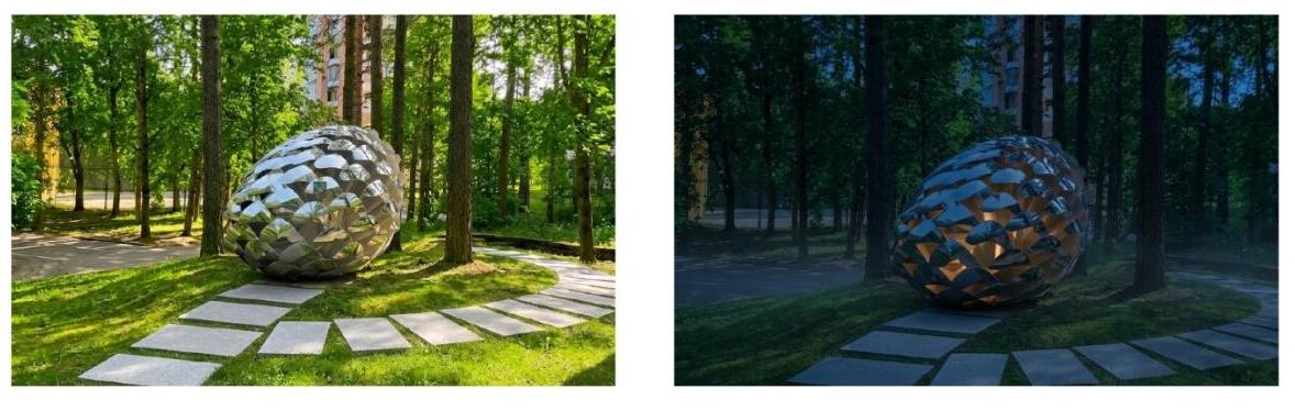 Также авторы предложили украсить территорию арт-объектом в виде огромной зеркальной шишки с подсветкой. Этот объект, по задумке, символизирует природную и научно-техническую составляющие Соснового Бора.