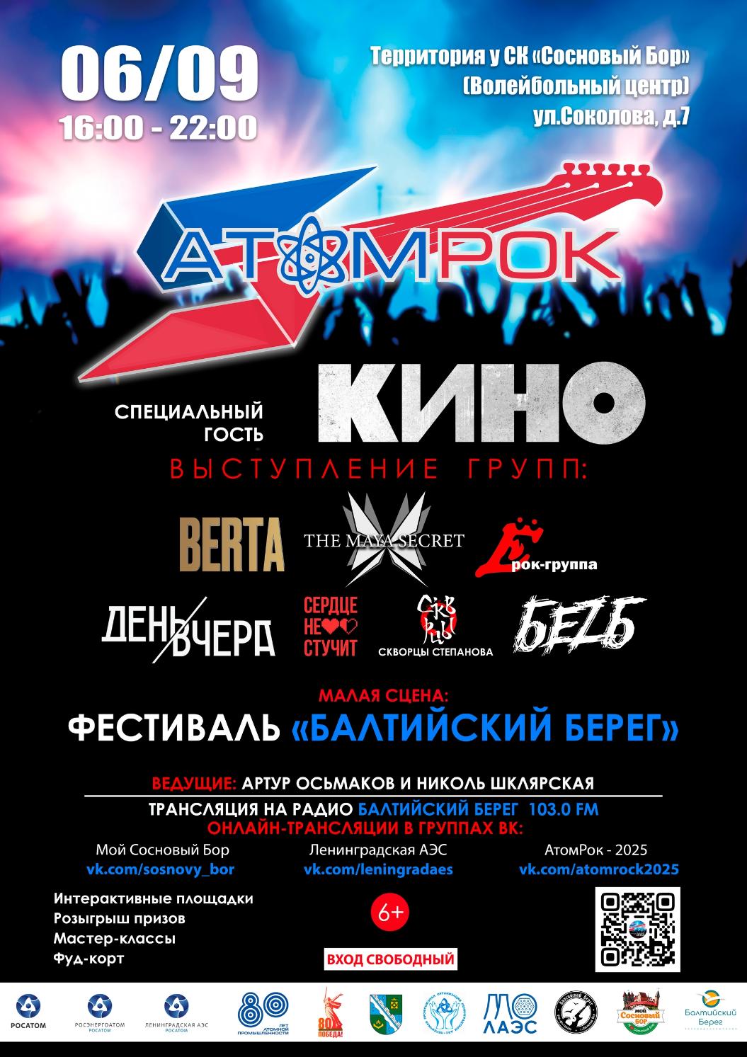 На сцене возле Волейбольного центра выступят как коллективы Ленинградской АЭС, так и известные гости из Москвы и Санкт-Петербурга.